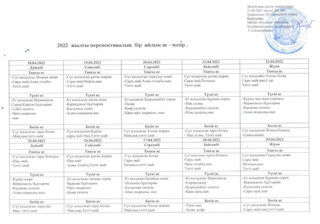 «Рухани жаңғыру» бағдарламасы жұмыс жоспары