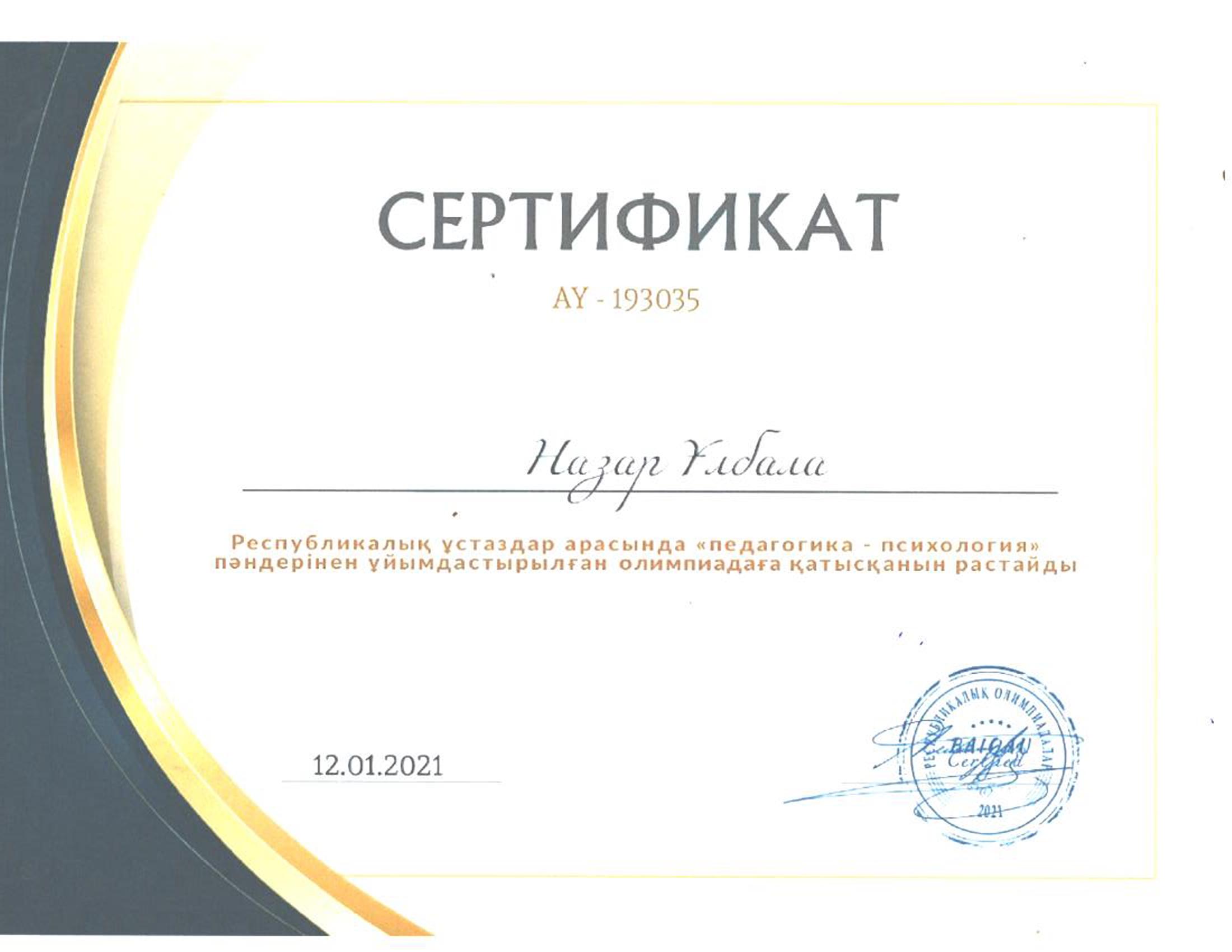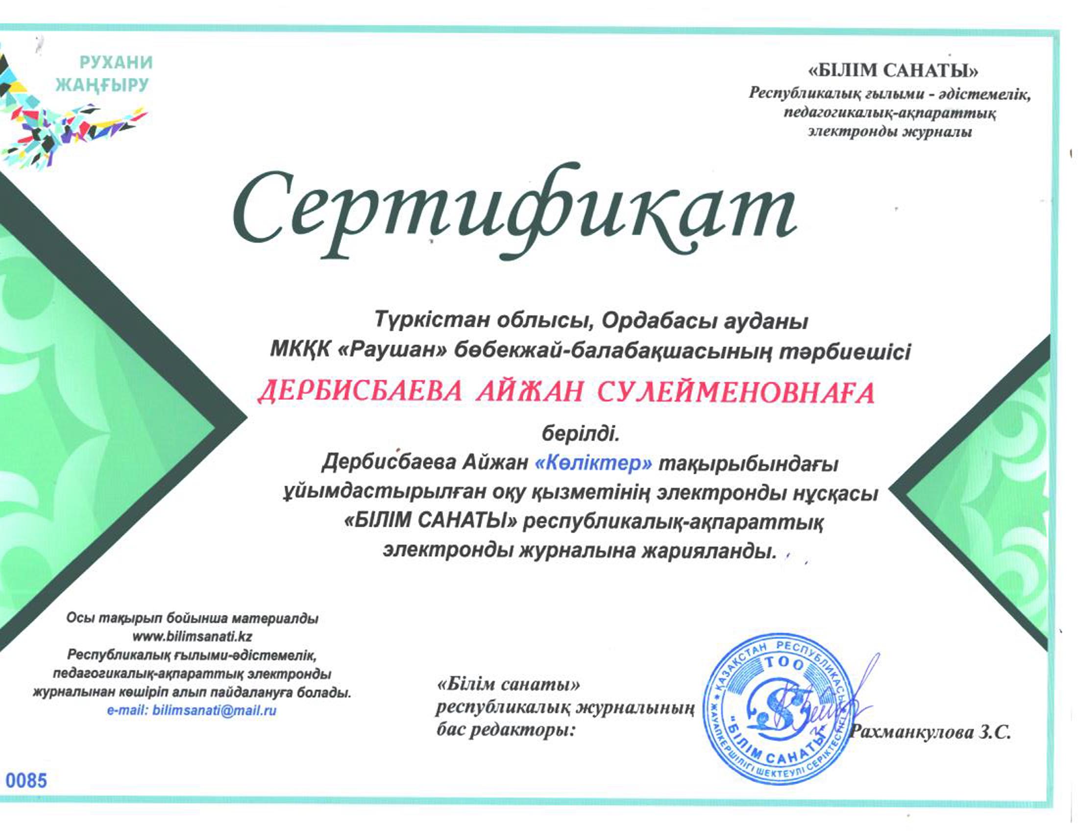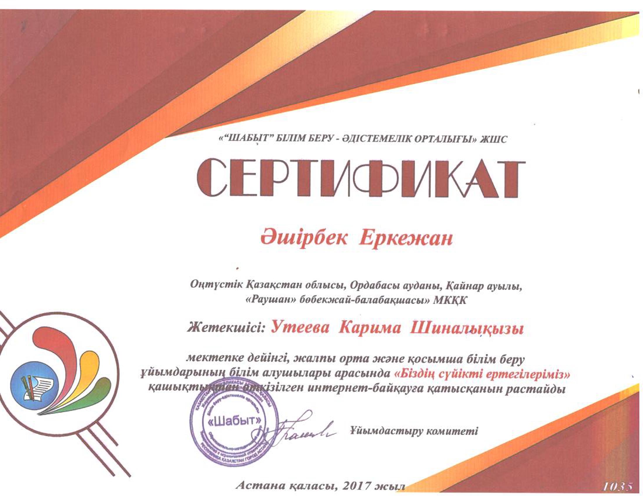 Педагогтардың сертификаттары