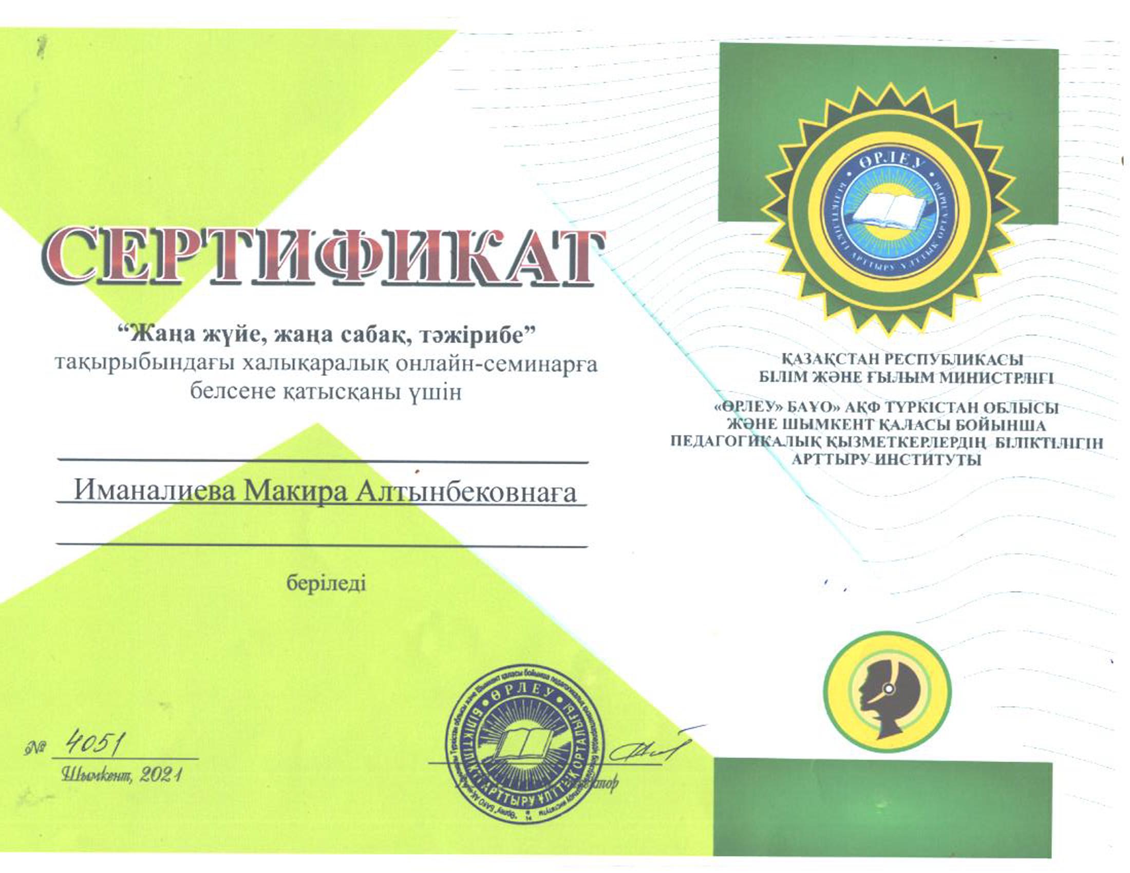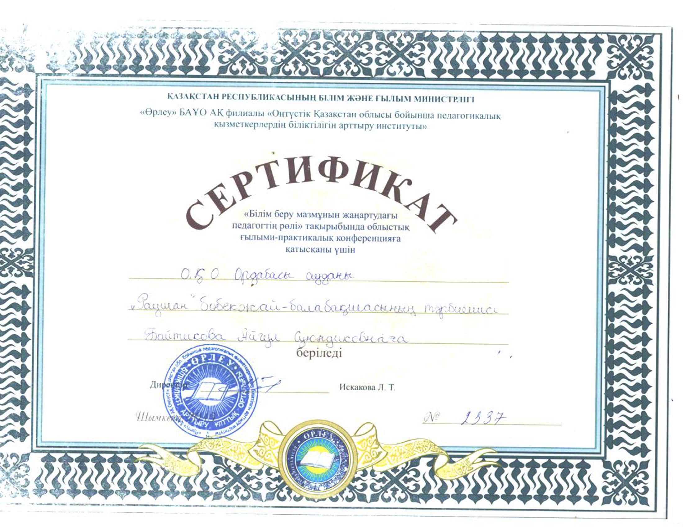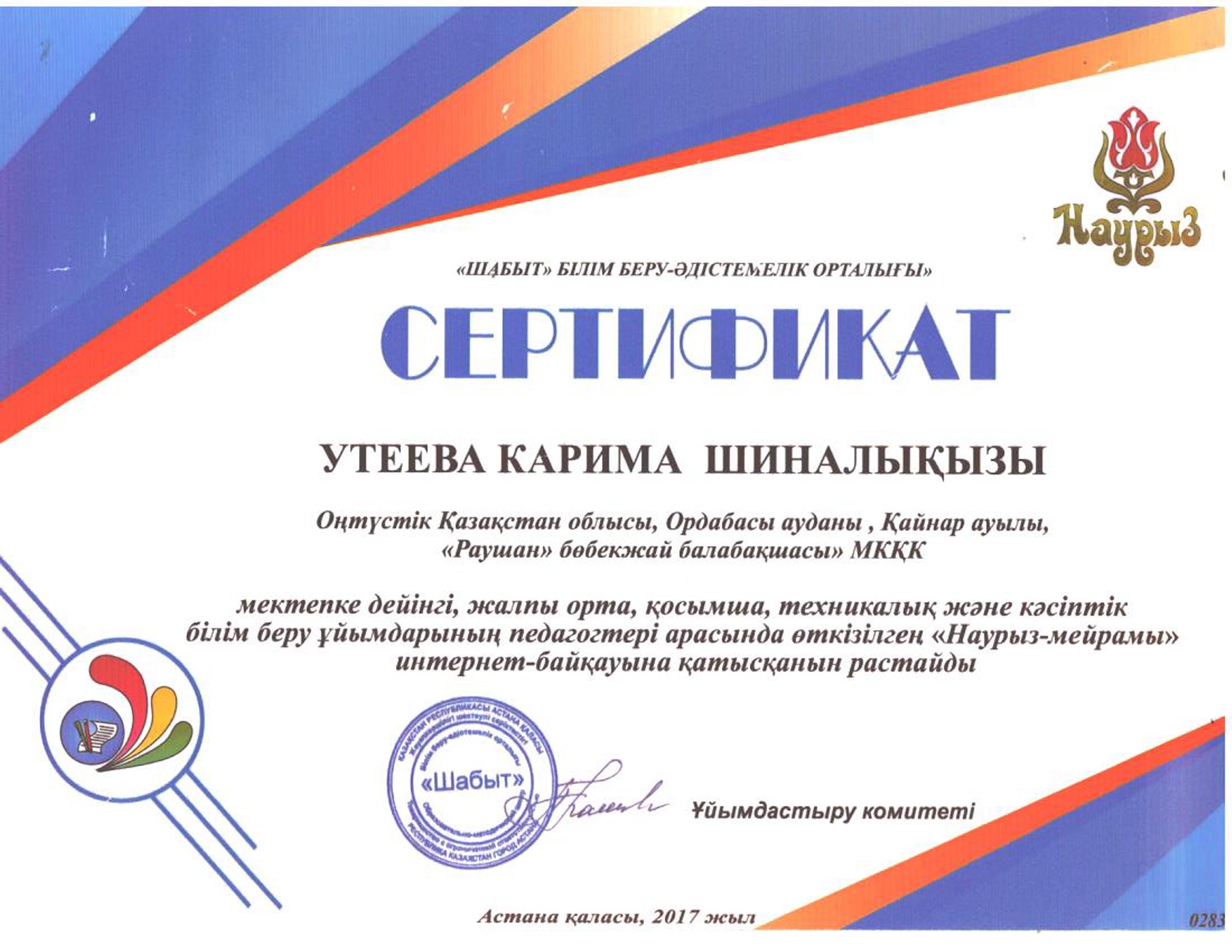 Педагогтардың сертификаттары