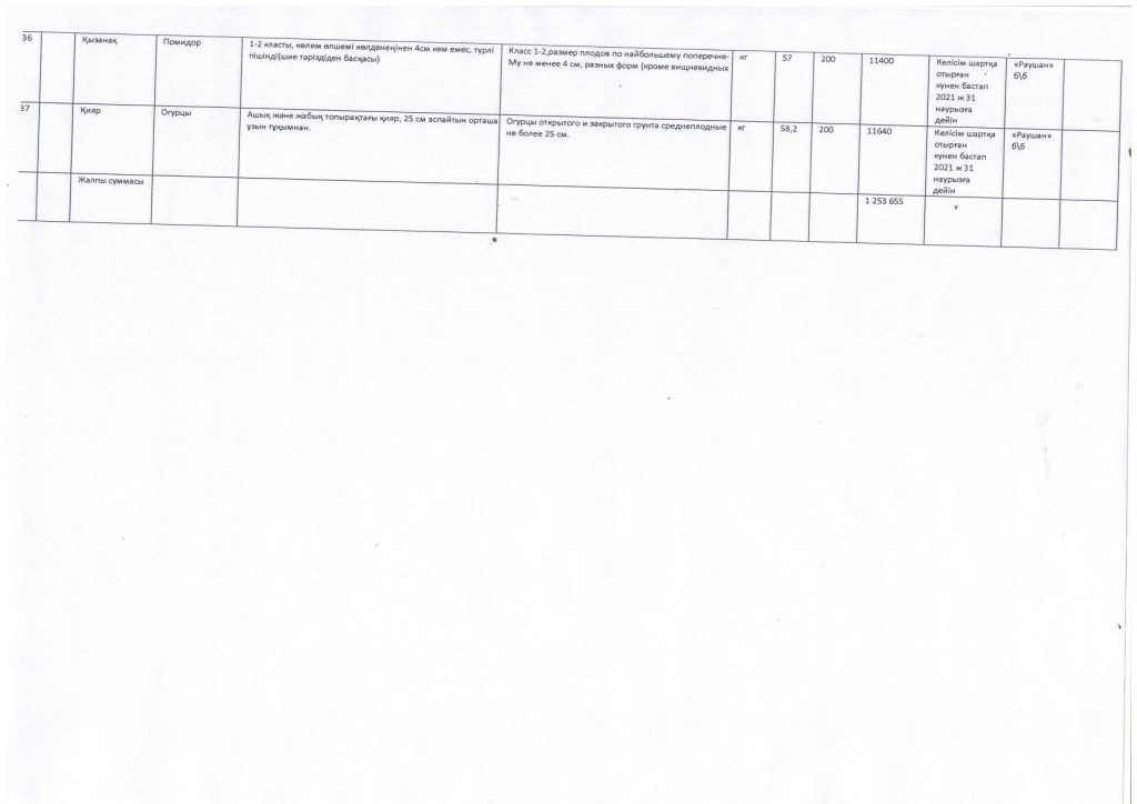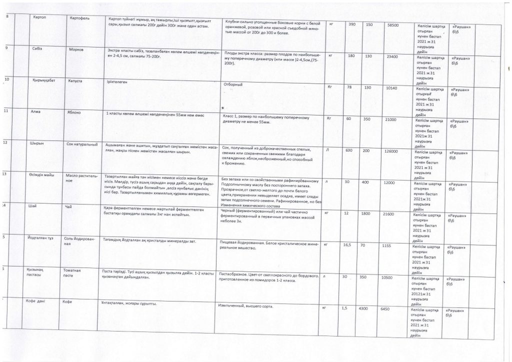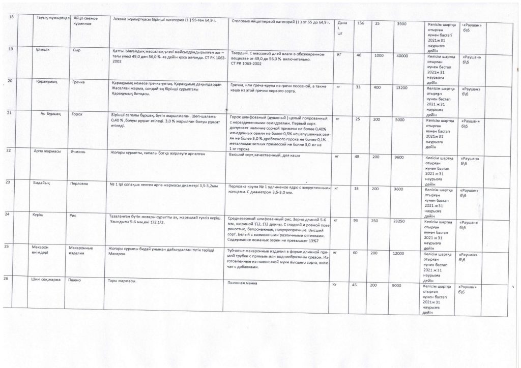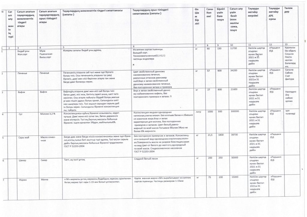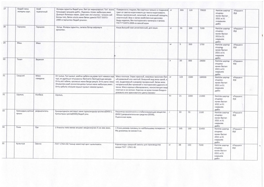 Азық түлік тауарларын сатып алу жоспары