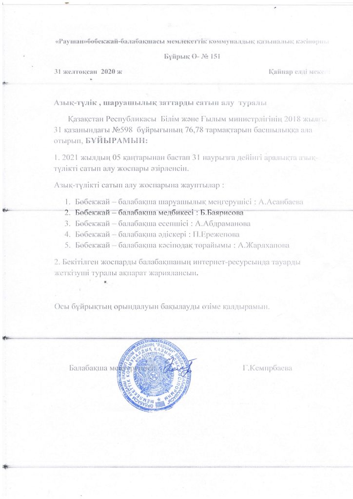 Азық түлік тауарларын сатып алу жоспары